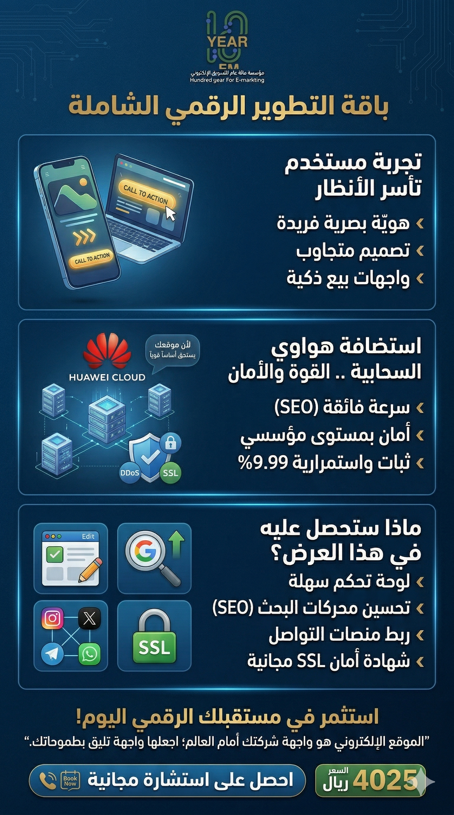 نقدم لك كل ما تحتاجه لتطوير متجرك الإلكتروني من تحسين محركات البحث (SEO) لجذب الزوار، إلى إعلانات سوشيال ميديا مستهدفة، وتحليل المنافسين، وتصميم هوية بصرية مميزة وأكثر..